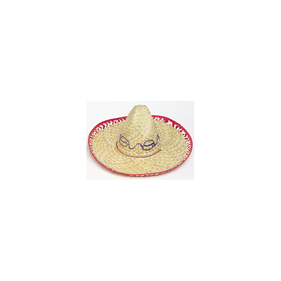 Ce sombrero en paille pour adulte avec liseré rouge peut compléter votre tenue de Mexicain.