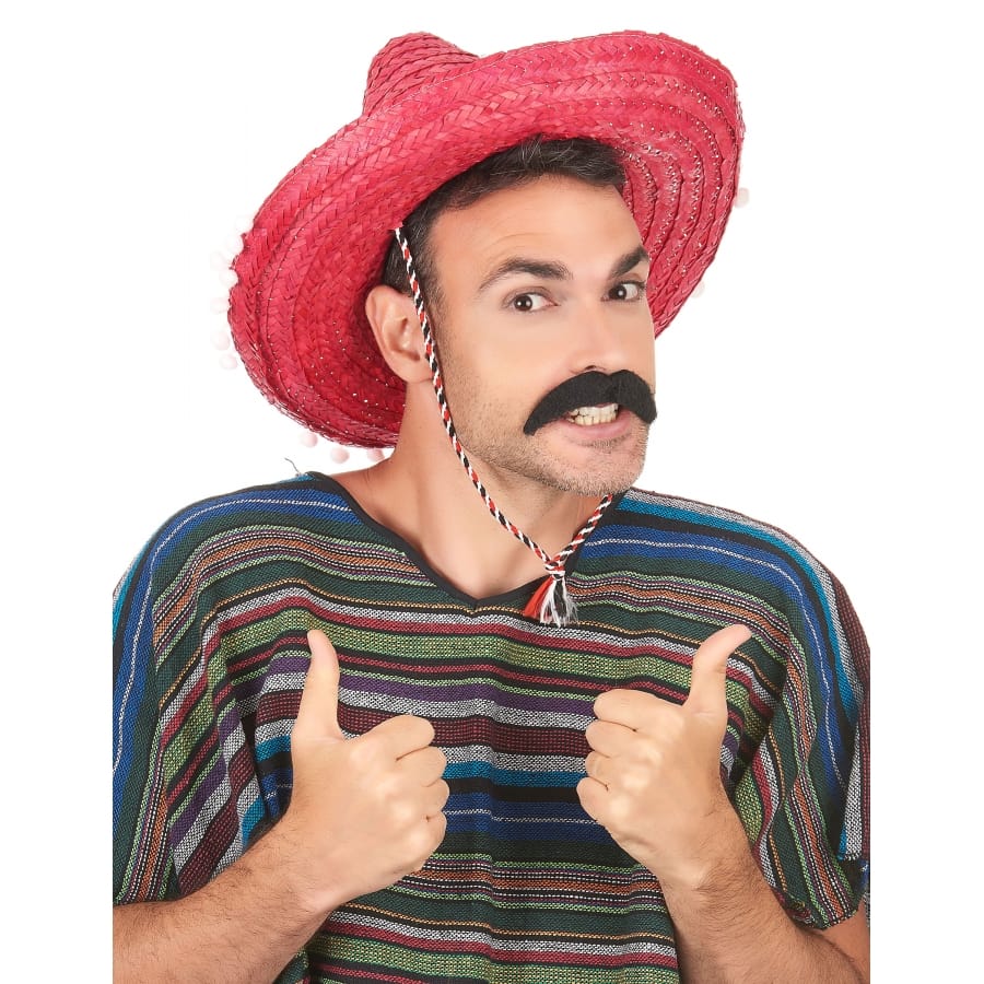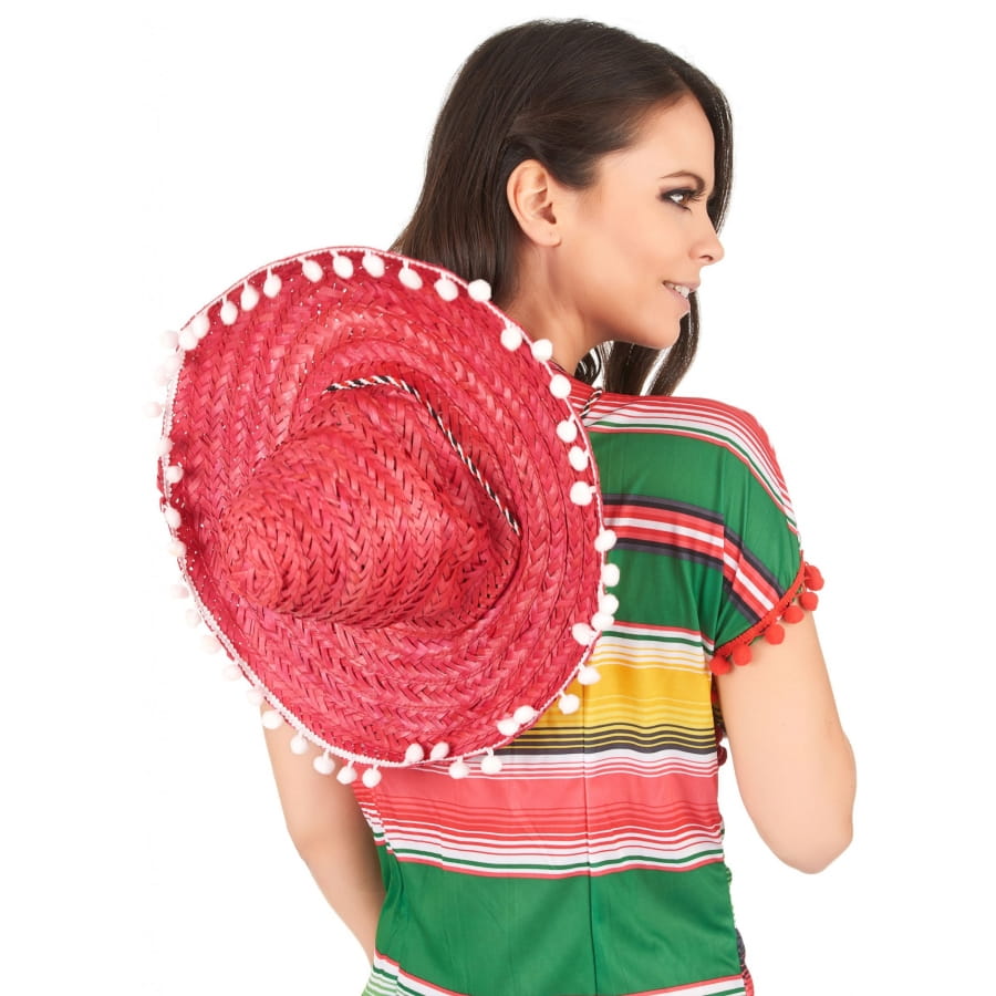 Vous pourrez accompagner votre déguisement de Mexicain avec ce sombrero rose contours en pompons blancs pour adulte.