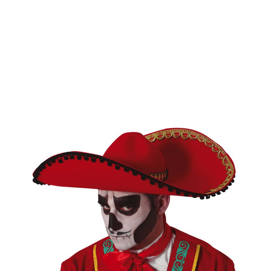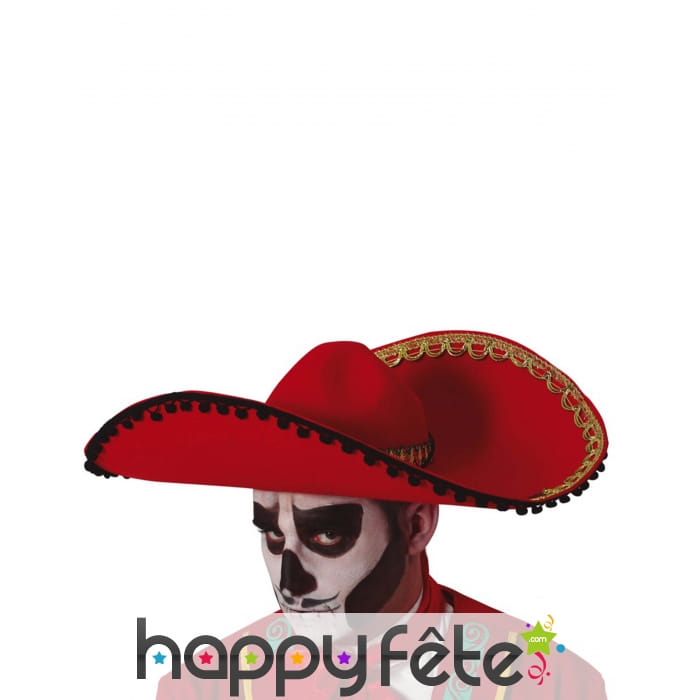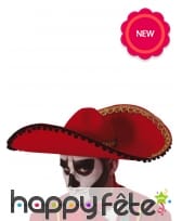 Soyez fin prêt pour le prochain Dia de los muertos en vous parant du sombrero rouge avec liseret noir et or.
