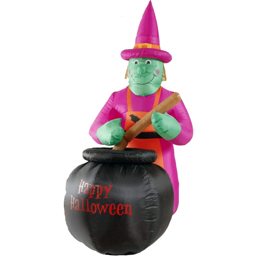 Sorcière et chaudron gonflable et lumineux, mesurant 183 centimètres de haut. Un compresseur de 220 V est inclus avec cet accessoire. Crééz une atmosphère d'Halloween gai et amusante pour les enfants!