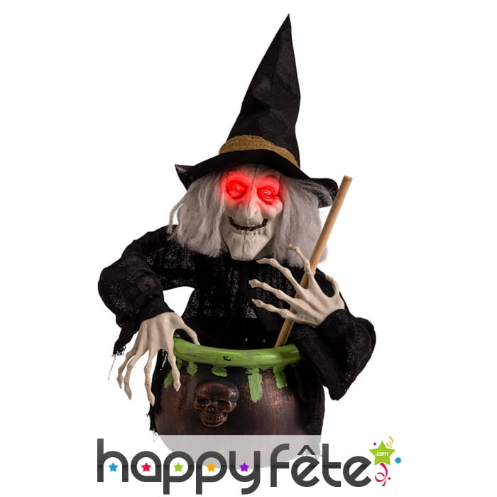 Poussez encore plus loin le frisson à Halloween en vous offrant les services de la sorcière sonore de 70 cm avec yeux lumineux.