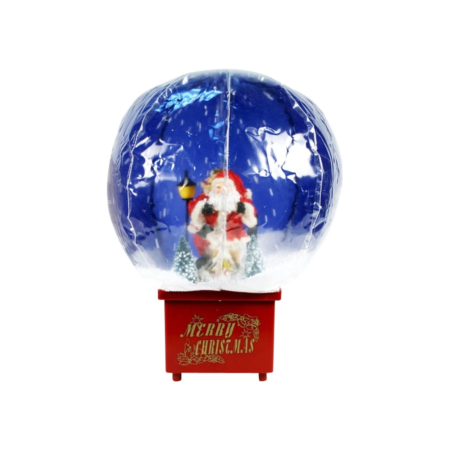 Souffle de neige musical de 220 V en forme de sphère avec un Père Noël à l'intérieur. La sphère tient sur un socle "Merry Christmas" rouge et mesure 40 centimètres. Cette sphère plaira à tous vos invités une fois allumée.