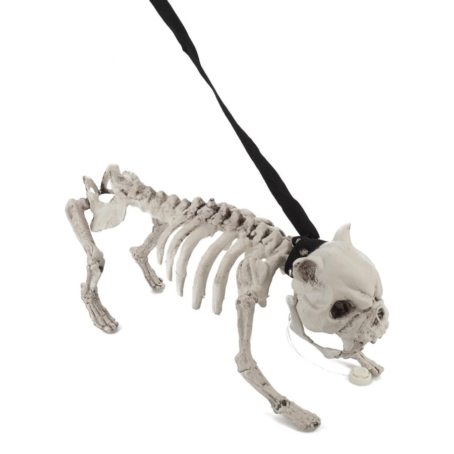 Le soir, ce squelette de chien coloris blanc va aboyer, et ses yeux s'illumineront.
