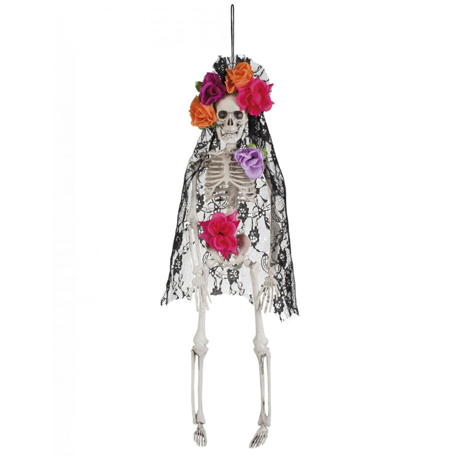 Le squelette de Lady Calavera Dia de los muertos, 40 cm sera parfait pour une décoration de maison hantée à l'occasion du Jour des Morts mexicain.