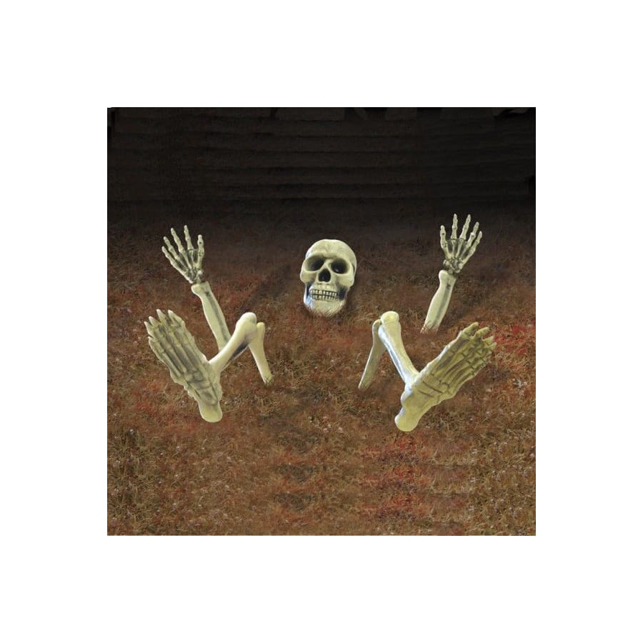 Vous êtes en train d'organiser une fête ou un évènement pour halloween? Ce squelette décoratif à moitié enterré est donnera le ton à votre décoration ! Il se compose de 4 éléments dont les jambes qui mesurent chacune 74 cm, les bras faisant 38 cm, le crane de 15,2 cm sur 11,4 cm, ainsi que de petites tiges afin de mieux planter le squelette dans le sol. Ses mesures assez réalistes vous feront penser à un vrai squelette. Cet article est parfait pour décorer votre jardin ou à mettre sur le devant de la porte.
