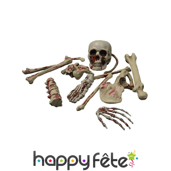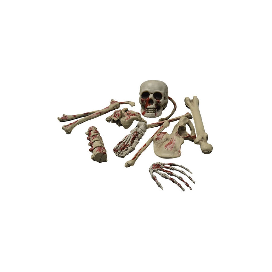 Le kit comporte une main de 16 cm, un crâne de 18 x 15 x 12 cm, un pied de 19 cm et d'autres éléments dont les plus longs mesurent jusqu'à 40 cm.