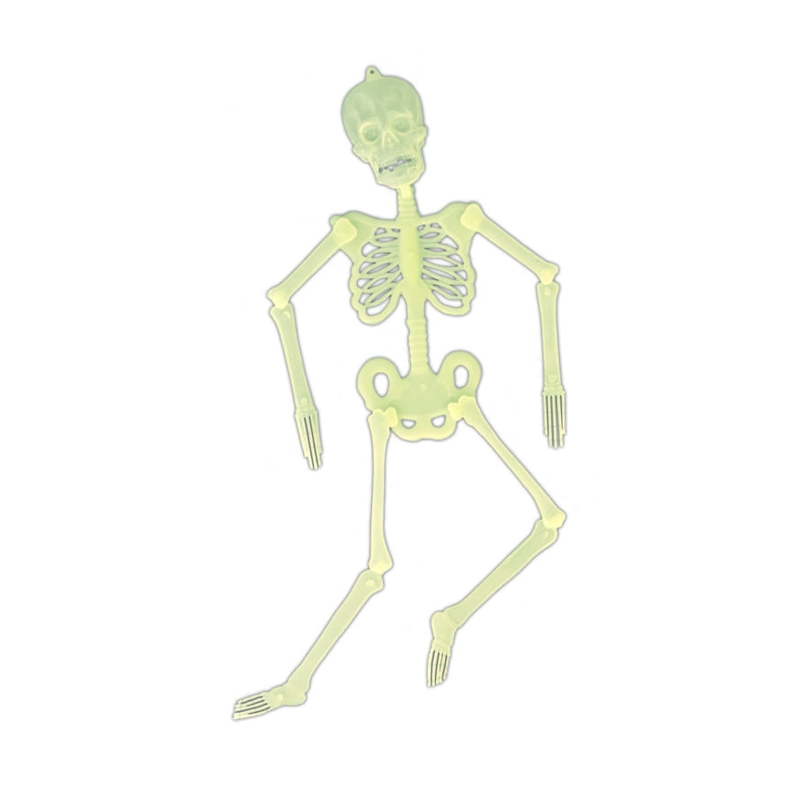 Ajoutez ce superbe squelette en plastique à votre décoration d'Halloween pour la rendre plus amusante et vivante. En effet, le squelette entier est fait de matière phosphorescente, qui lui permet d'emmagasiner la lumière du jour ou artificielle pour briller la nuit. Il mesure 32 centimètres de long.