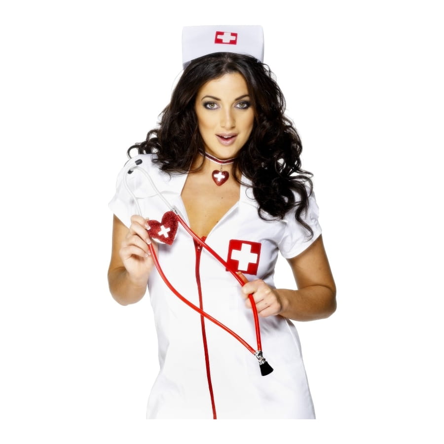 Pour compléter votre tenue d'infirmière ou de docteur cet accessoire est ce que vous avez besoin. De couleur blanc la , ou on écoute il devient rouge au bas avec un cœur au milieu du stéthoscope, le cœur est rouge avec une croix blanche dessus.