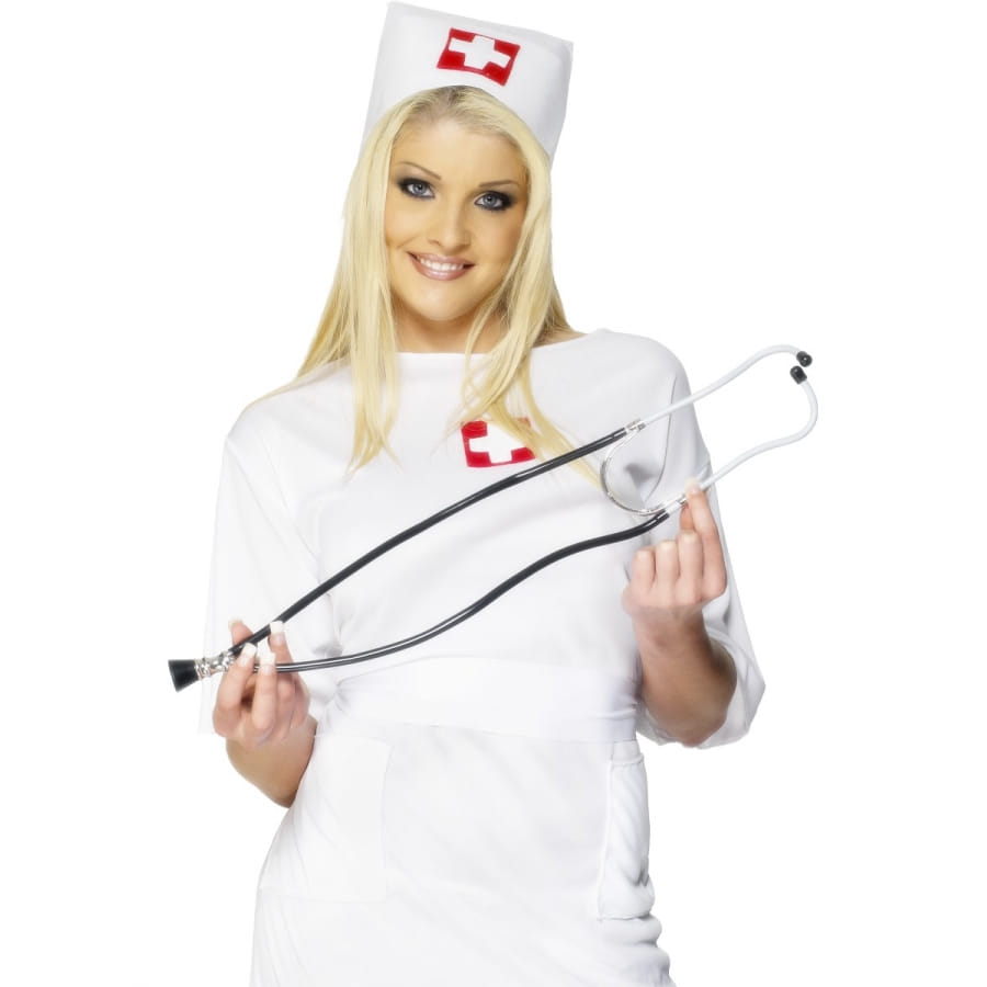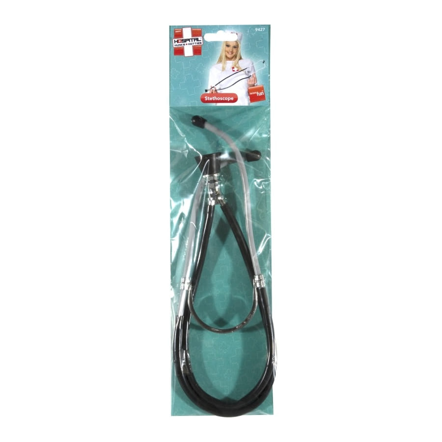 Un stéthoscope de docteur de couleur noir avec les deux bouts de couleur argenté. Vous pouvez utiliser ce stéthoscope pour compléter votre déguisement de docteur. Vous pouvez l'utiliser pour incarner aussi une infirmière.