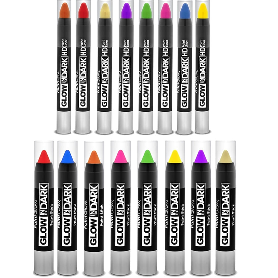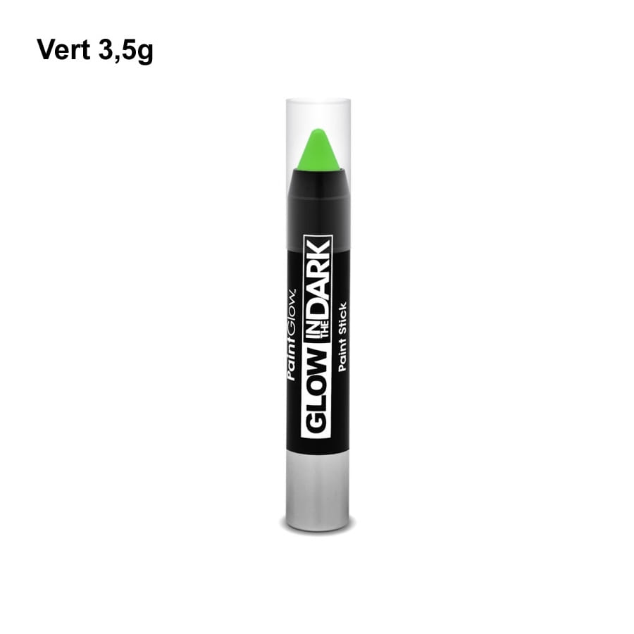 Stick de maquillage disponible en deux gabarits : 3,5 et 2,5g. Préférez le petit gabarit pour le maquillage de précision. Ce stick emmagasine la lumière du jour pour la diffuser dans le noir. Ne réagit que très faiblement à la lumière noire (UV). Peut être utilisé sur tout le corps ainsi que sur le visage. Idéal pour une soirée tout en couleur. Vendu à l'unité, il est nécessaire de choisir la couleur souhaitée ainsi que le gabarit du produit.