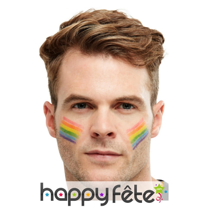 Ce stick est un bâton de fard qui, en un geste, laissera les couleurs de l'arc-en-ciel sur votre visage.
