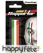 Ce stick peut vous être utile pour décorer votre visage avec le drapeau italien de couleur vert, blanc et rouge.