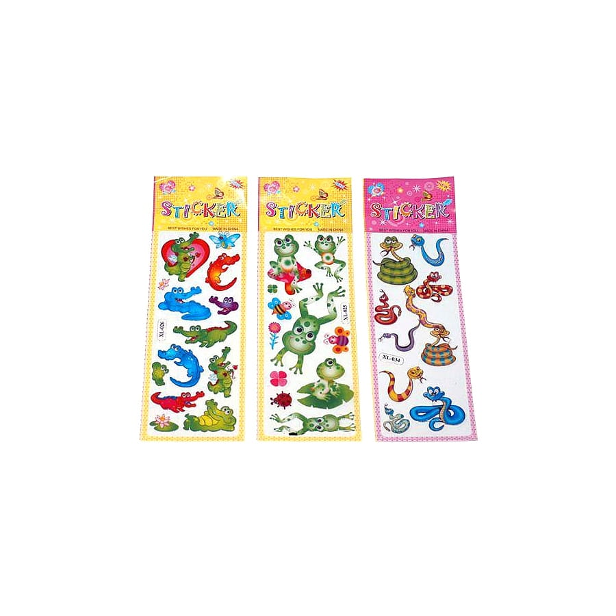 Ces stickers, vos enfants pourront les poser partout ! Cahiers, carnets, blocs notes, livres, etc, seront recouverts de gentils animaux humoristiques. Cette carte de 65 x 190 mm de dimension présente plusieurs stickers de diverses tailles et aux multiples couleurs. De drôles d'animaux y figurent : serpents zinzins, croco joyeux, grenouille charmeur, papillon mignon, etc. Vous ne pourrez pas choisir le modèle à la commande, il dépendra du stock disponible ou de l'arrivage.