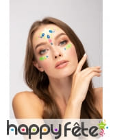 Ces strass sont autoadhésifs, il vous suffit de les décoller de la planche pour les disposer sur votre visage.