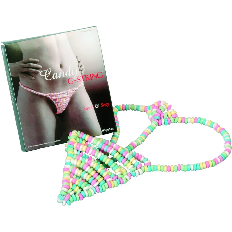 Pour la saint valentin ce string en bonbon en surprendra plus d'un. Vous pourrez le porter pour une soirée sous le thème sexy et charme. Le string fait 145g. La première pièce recouvre les parties intimes et se prolonge en ficelle de bonbon multicolore. Les gourmands vont se régaler.