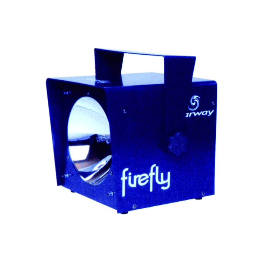 Stroboscope Firefly projetant 15 flashs par seconde. La taille de cet accessoire est de 280, 262 et 284 millimètres. Il possède un générateur interne, un réglage de vitesse par tensiomètre et une lampe interchangeable sans soudure. Il sera livré avec un tube à éclat TF60 et consomme 60 WC. Cet objet sera idéal pour toutes vos fêtes.