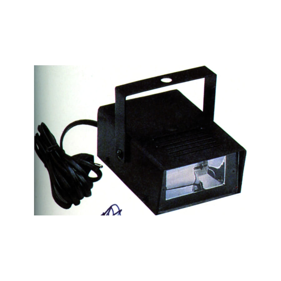 Stroboscope flash compact pour petite salle livré avec tube. La taille de cet accessoire est de 100 sur 135 sur 97 millimètres. Il possède un générateur avec réglage de vitesse par potentiomètre et consomme 14 W. Vous pourrez vous en servir pour toutes vos fêtes.