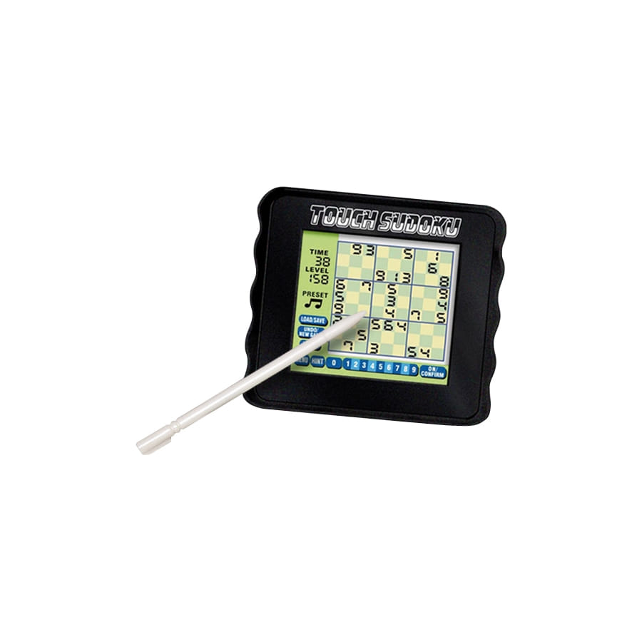 Jeu de Sudoku sur écran tactile de couleur noir. La tablette mesure 8 centimètres carrés. Ce jeu convient aux hommes, femmes, enfants ou adolescents. Il suffit de connaître les règles pour y jouer!