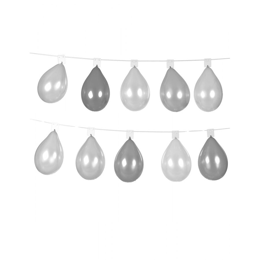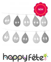 Il s'agit d'une guirlande longue de 8 mètres et composée d'un ruban blanc sur lequel sont disposés des supports de ballon fabriqués en carton.