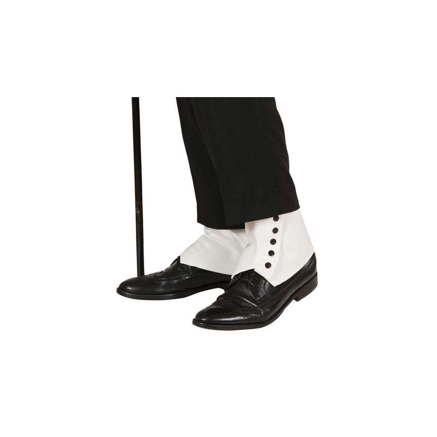 Pourquoi ne pas commander cette paire de sur chaussures blanches avec pressions noires pour mettre en valeur votre déguisement Charleston ?