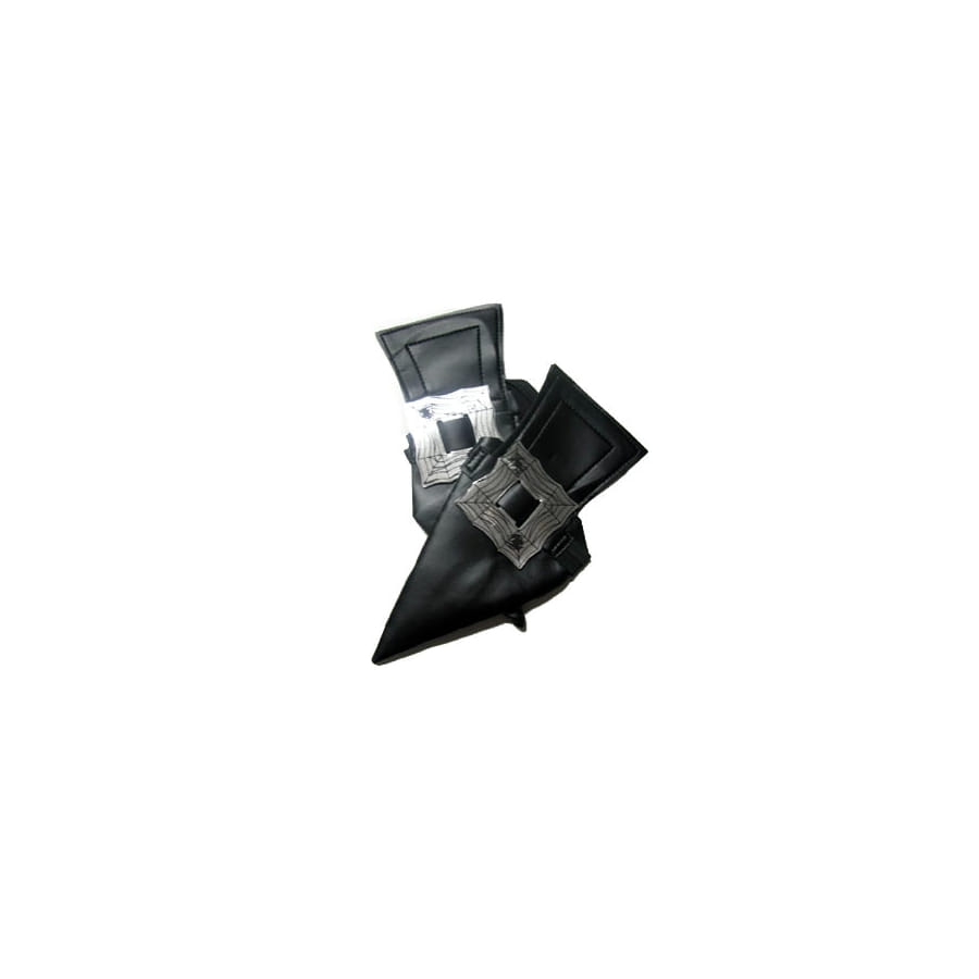 Ces accessoires sont fait d'un tissu à effet cuire noire et présentent une boucle dorée sur la partie avant de la chaussure.