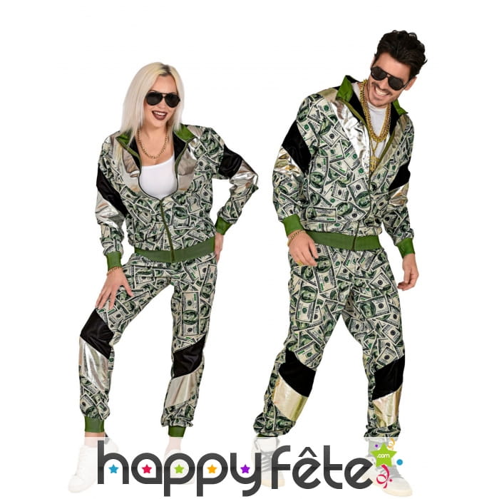 Offrez-vous une soirée bling bling version rétro, avec le survêtement dollar pour adulte type années 80.