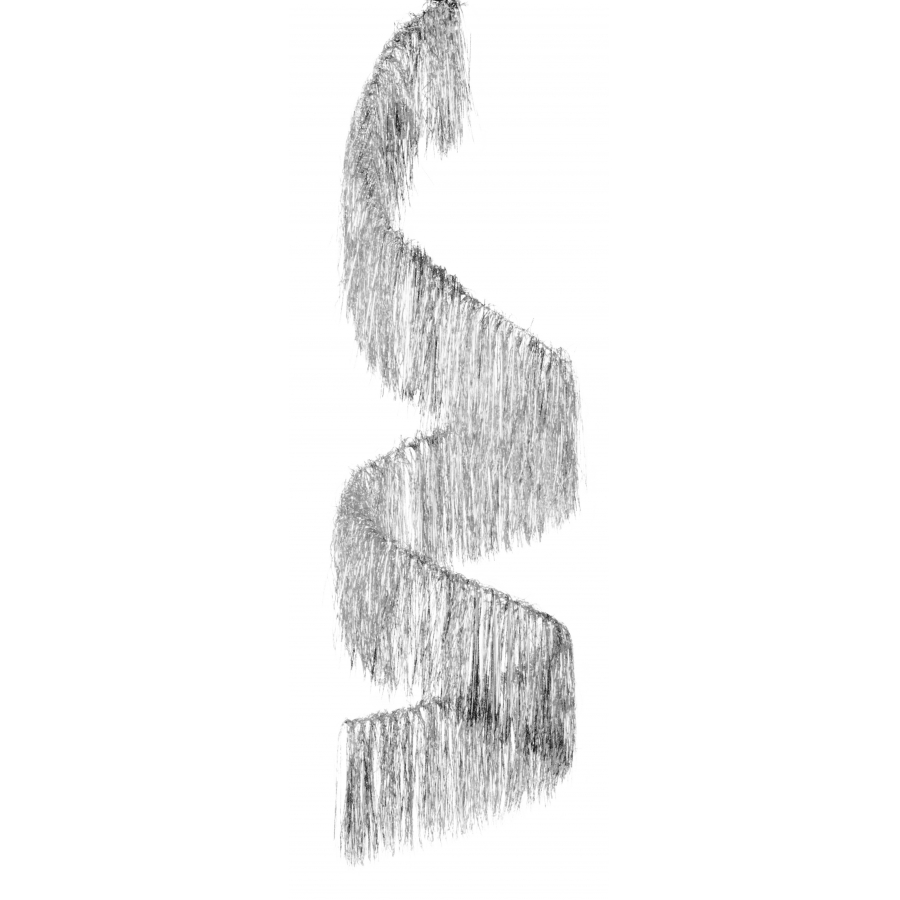 Suspension en forme spirale argentée. La taille de cet accessoire est de 30 centimètres de largeur sur un mètre de longueur. Accrochez la suspension à votre plafond et regardez-la illuminer votre décoration!