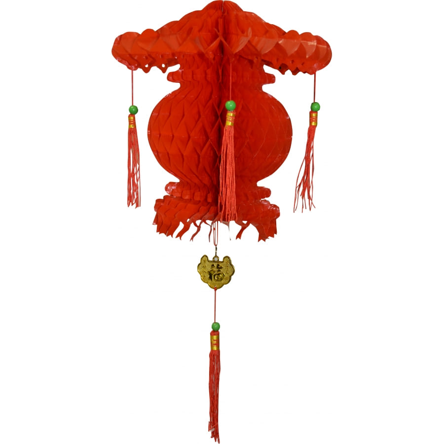 Supension de lumière chinoise en plastique rouge. La taille de cette lanterne est de 30 centimètres. Elle diffusera une agréable lumière tamisée de couleur rouge et est parfaite pour célébrer le Nouvel An chinois de façon traditionnelle.