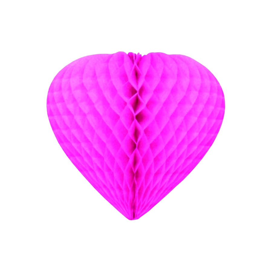 Suspension en papier alvéolé en forme de coeur de couleur fuchsia. Cet accessoire de décoration mesure 30 centimètres. Avec ce coeur suspendu, vous créerez une atmosphère romantique idéale pour la Saint Valentin ou un mariage.