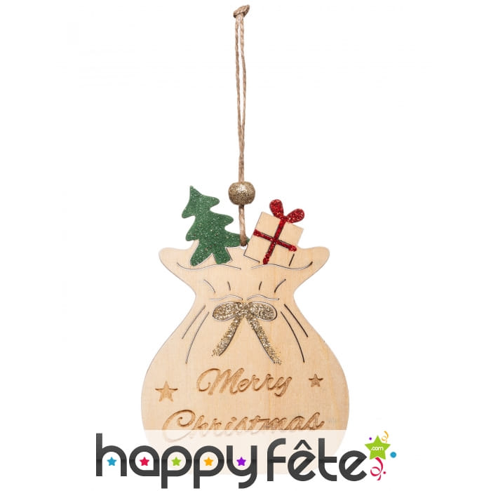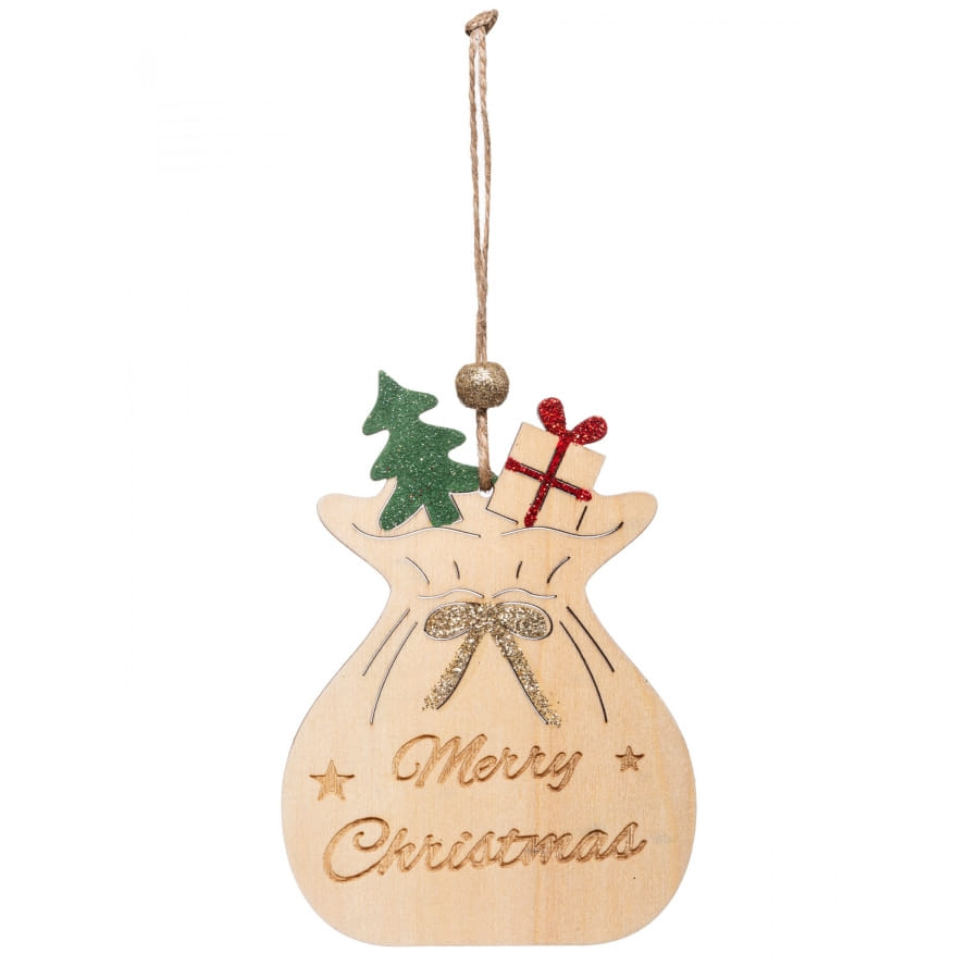 Imaginons ensemble : le bois, matériau noble et chaleureux, sculpté avec soin pour représenter un sac rempli de surprises et un petit sapin. Le résultat ? Une décoration qui raconte une histoire, celle de la magie de Noël et des surprises qu'elle apporte.
