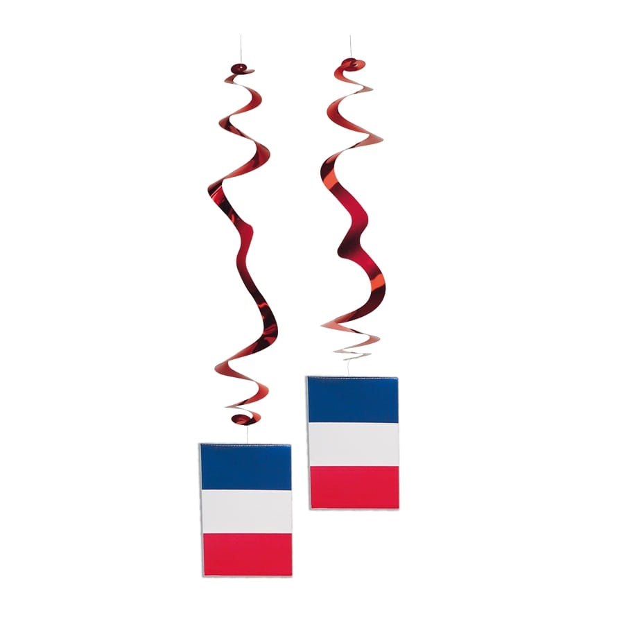 Pour faire la fête à la française, n'hésitez pas à accrocher ces beaux petits drapeaux un peu partout ! A l'occasion de la fête nationale, d'un match, ou d'un évènement particulier qui met la France à l'honneur, optez pour cet article sensationnel. Voici un lot de 6 suspensions métallisées. Chacune d'elle est garnie du drapeau tricolore en papier, de couleur bleue, blanche et rouge, faisant 80 cm de dimension.