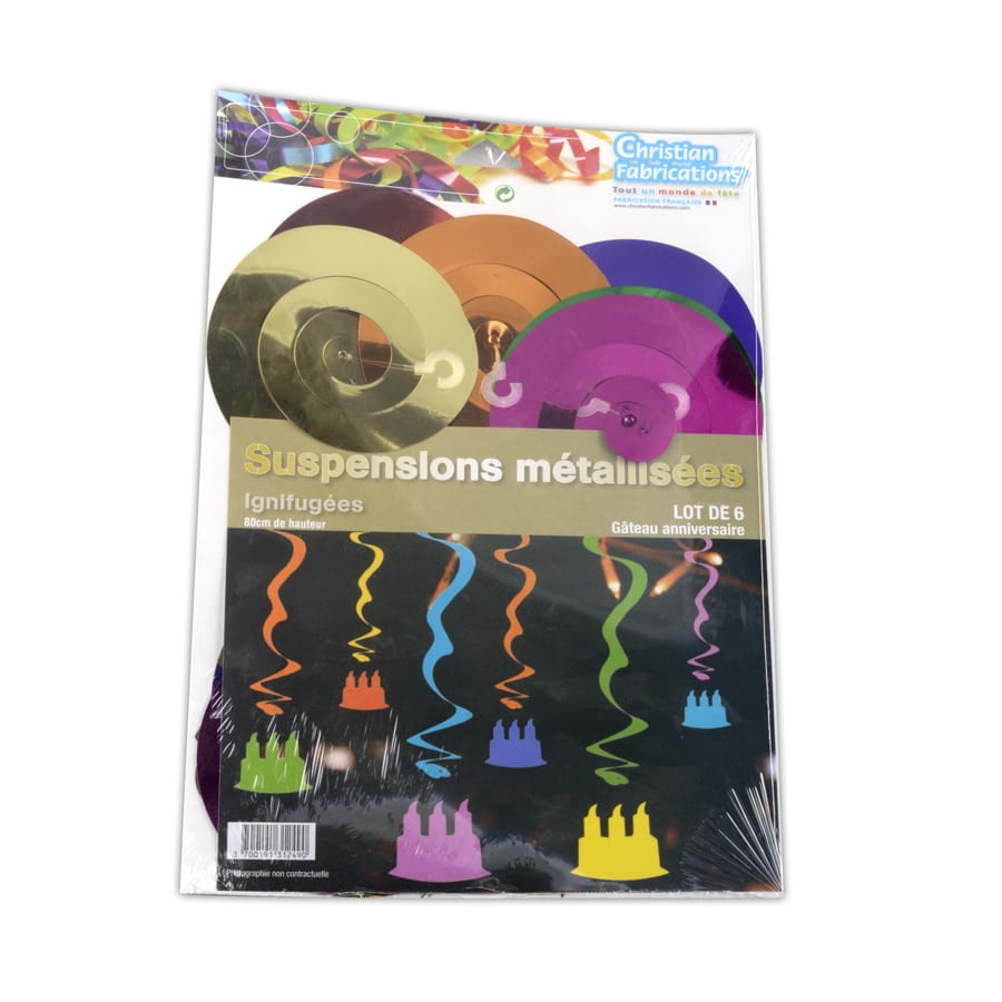 Le moment tant attendu de souffler les bougies d'anniversaire est arrivé ! Créez une ambiance encore plus festive avec ces suspensions gâteau d'anniversaire. De belles couleurs sont au rendez-vous grâce à ce lot de six suspensions multicolores. De nature ignifuge, chacune de ces suspensions présente une couleur métallisée. Elles offriront une magnifique décoration colorée, pour un anniversaire mémorable !