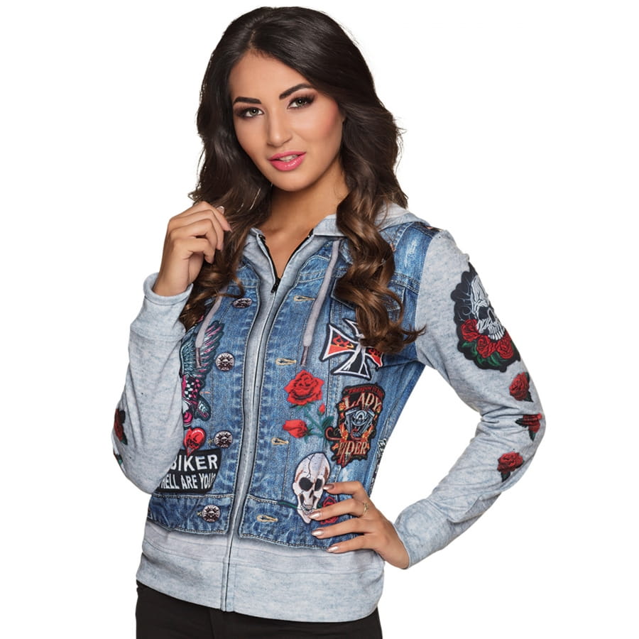 Le sweat à capuche photo réaliste de biker est un vêtement pour femme.