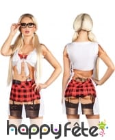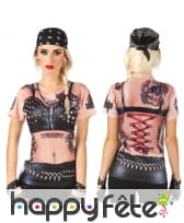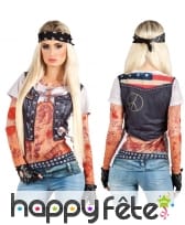Les manches sont courtes et la base se situe au-dessus de la taille, dans un style tendance de l'époque disco.