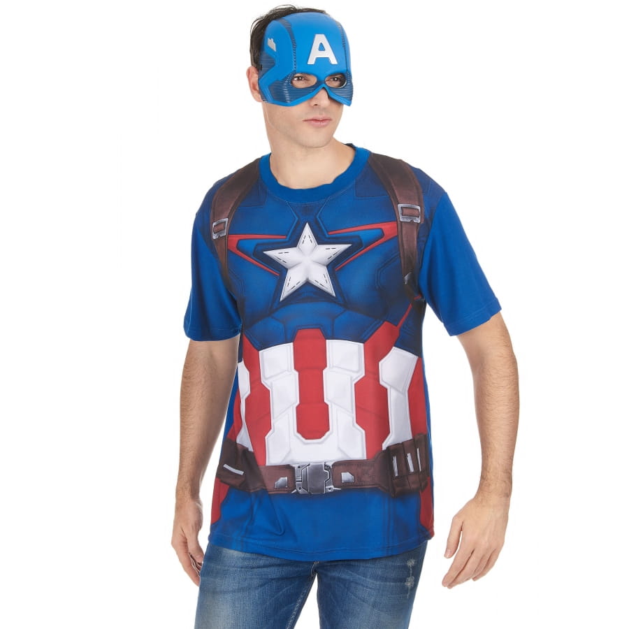 Nous vous présentons ici un ensemble t-Shirt Captain America 2 avec masque, adulte.