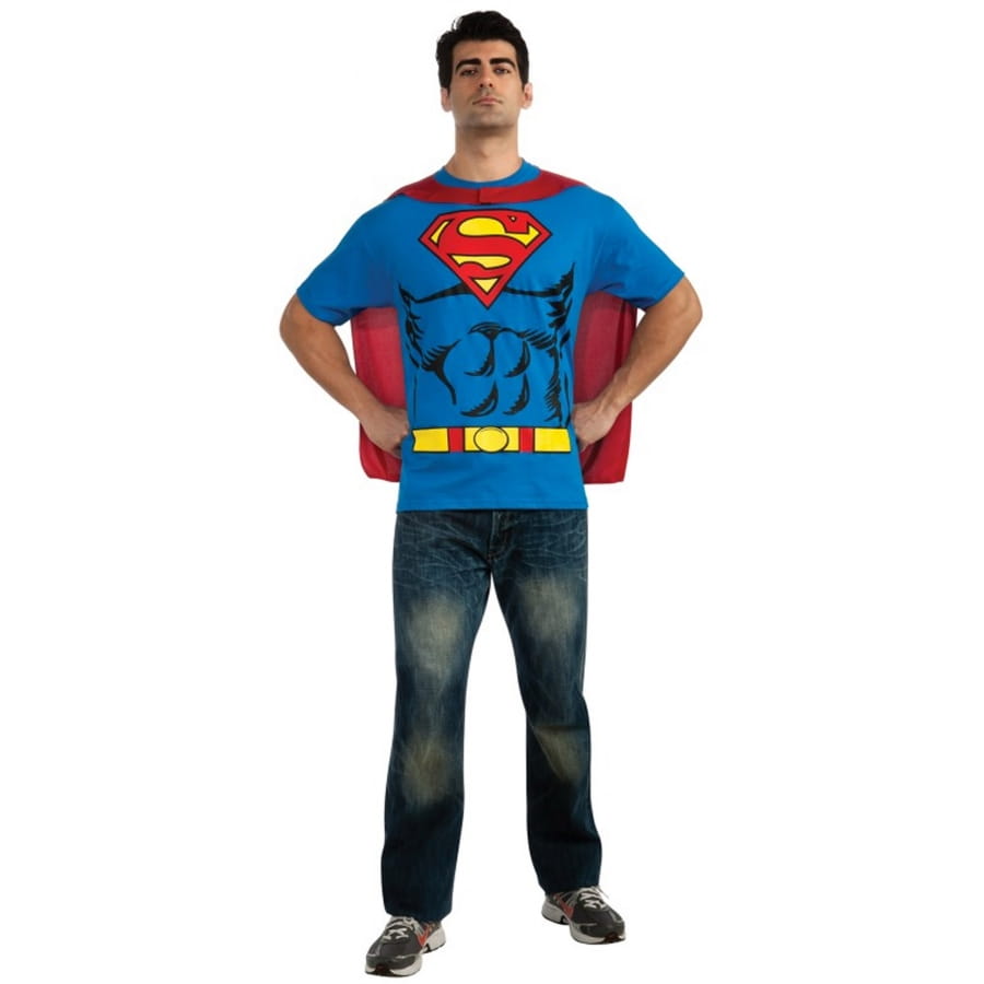 L'heure tourne, il est temps d'aller sauver le monde ! Enfilez sans plus attendre votre t-shirt de superman avec cape. Sous licence officielle Superman, ce t-shirt de couleur bleue affiche un imprimé en forme de torse sur le devant accompagné du logo grand S du héros. La fixation de la cape rouge s'effectue à l'aide de scratchs.