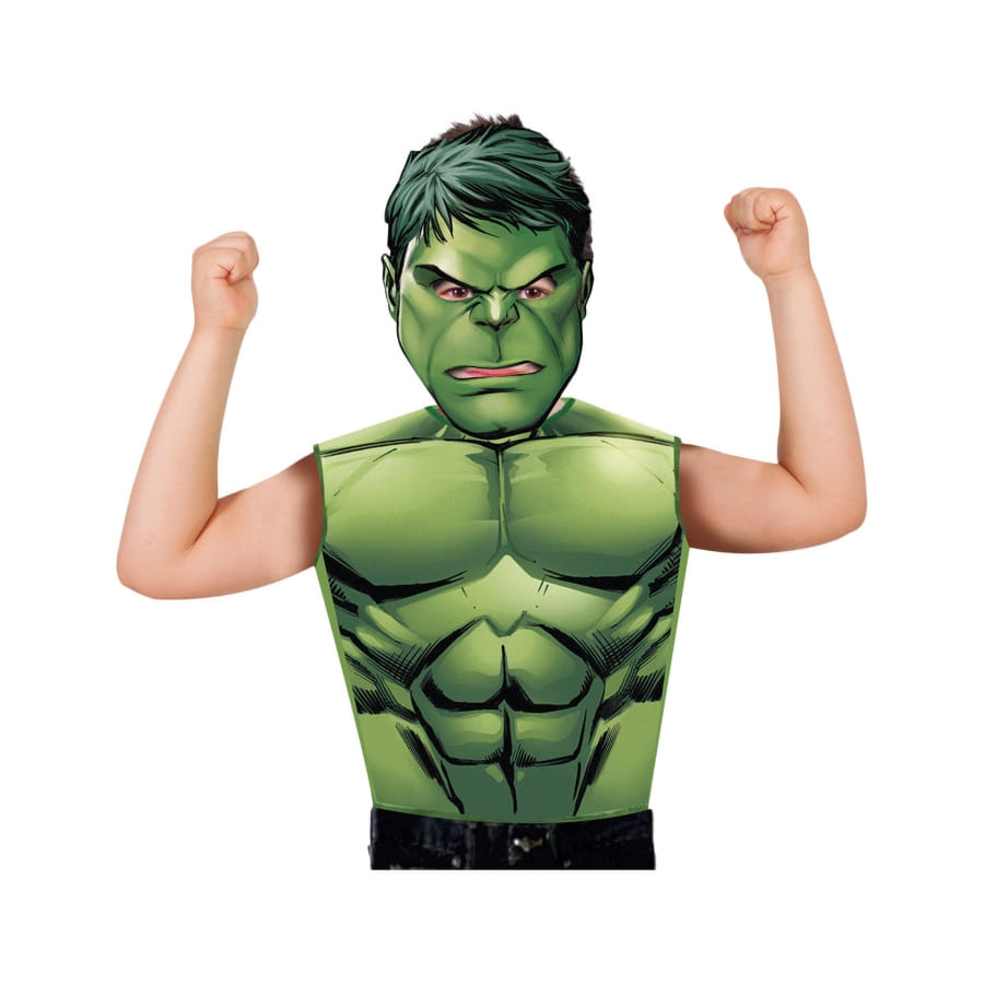 Votre petit trésor affrontera les ennemis avec style pendant un carnaval, un goûter d'anniversaire ou une fête costumée dans ce déguisement t-shirt et masque de Hulk pour enfant.