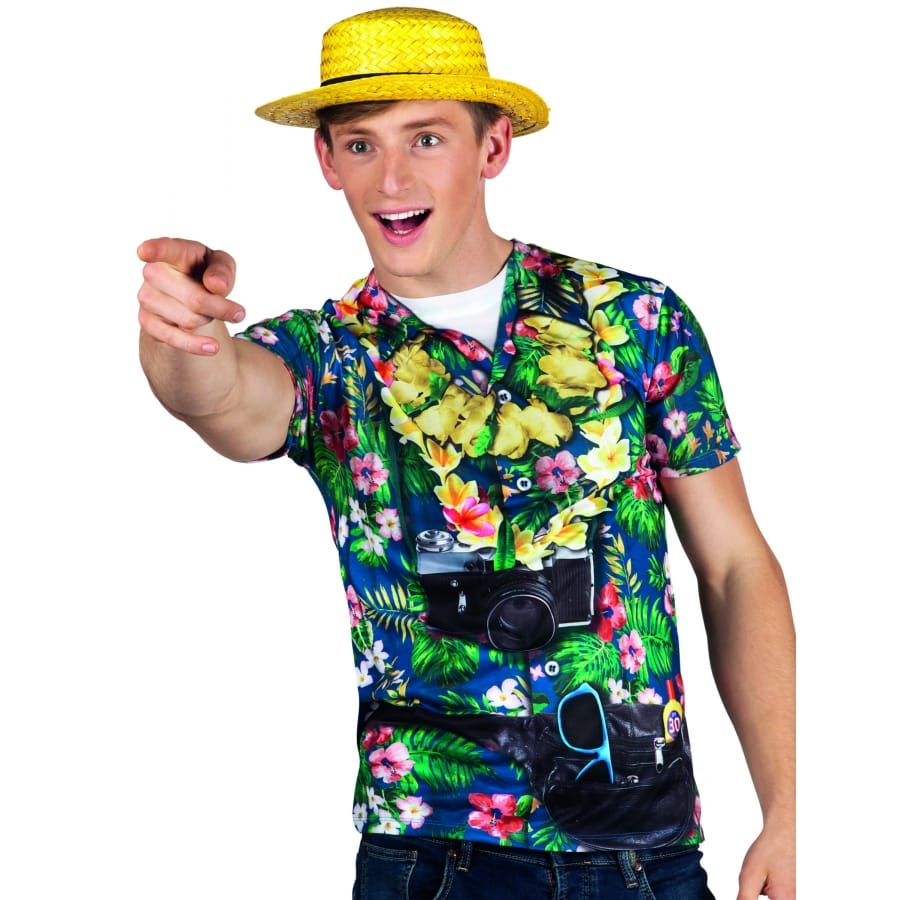 Ce t-shirt de touriste hawaïen sera parfait pour un fête sur le thème des tropiques.