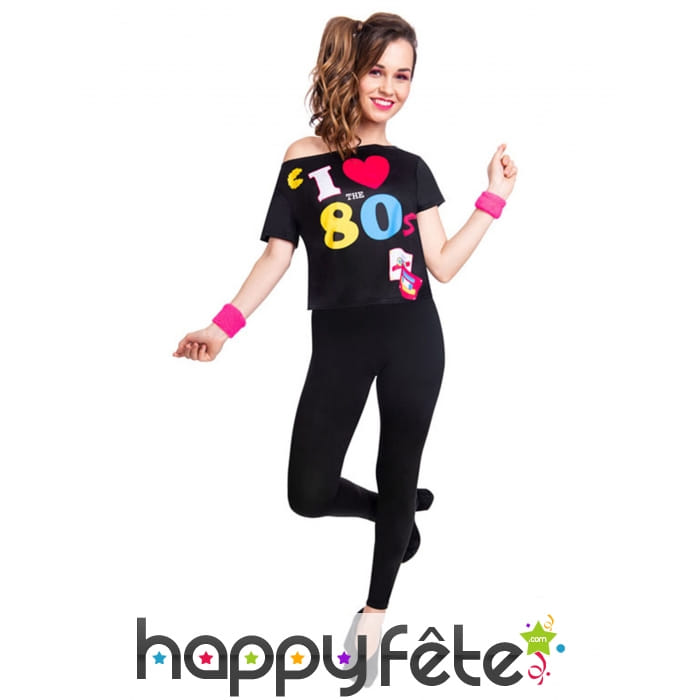La prochaine soirée déguisée sera l'occasion pour vous de clamer haut et fort votre amour des années rétro, avec le t-shirt I love 80 s noir pour femme adulte.