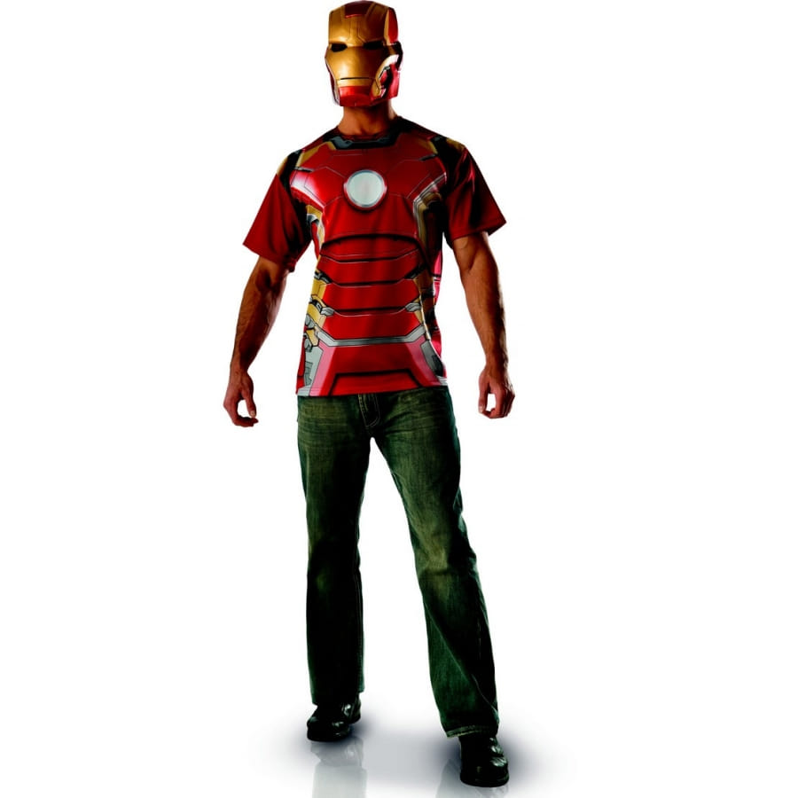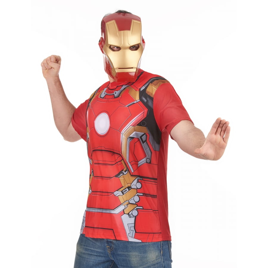 Le t-shirt Iron Man 2 avec masque en plastique rigide pour adulte est un assortiment destiné aux hommes.