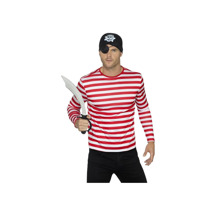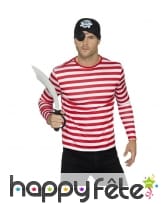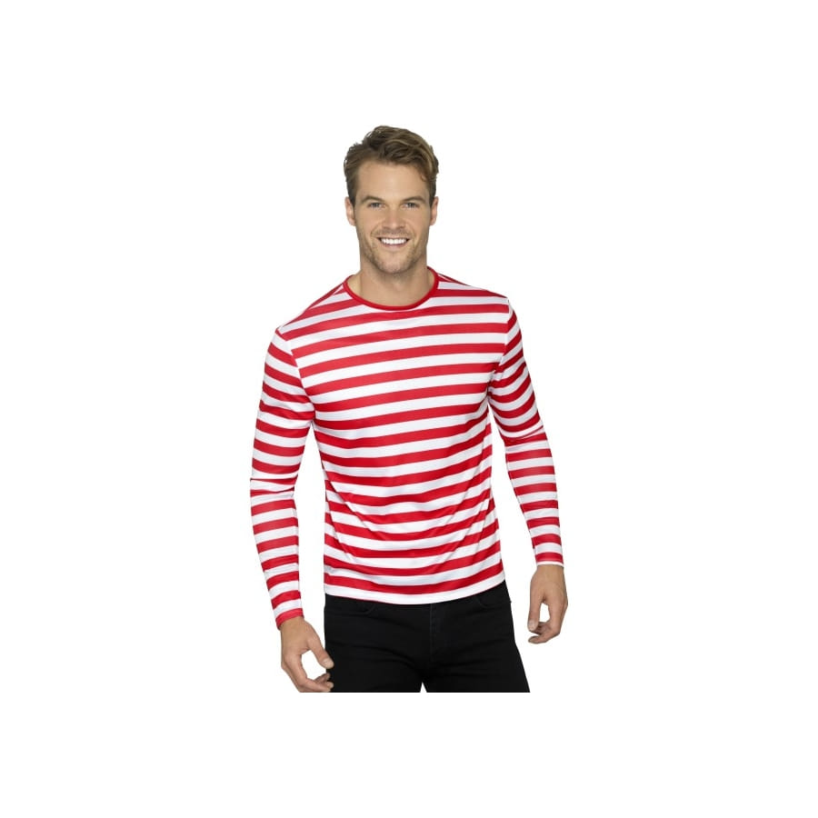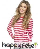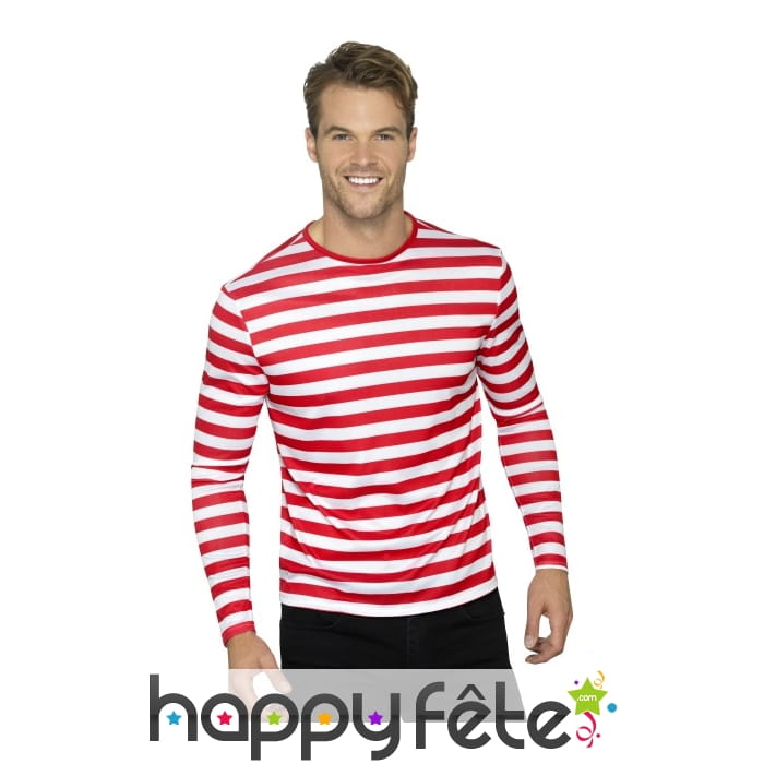 Un t-shirt à rayures, pourquoi pas mais pas n'importe lequel. Celui-ci est sous licence Où est Charlie. Messieurs et mesdames, ce t-shirt ligné rouge et blanc à longues manches est très agréable à porter. Il alterne les couleurs rouge et blanc dans ses rayures horizontales. Ce vêtement peut être porté comme tel, ou bien avec des accessoires pour constituer un déguisement de clown ou de pirate.