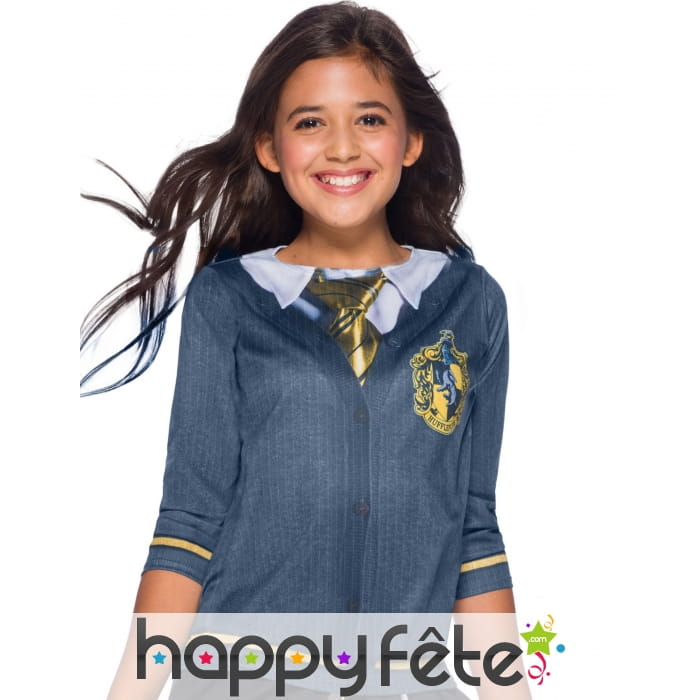 De couleur bleu, c'est un haut longues manches imprimé du blason de la maison Poufsouffle.