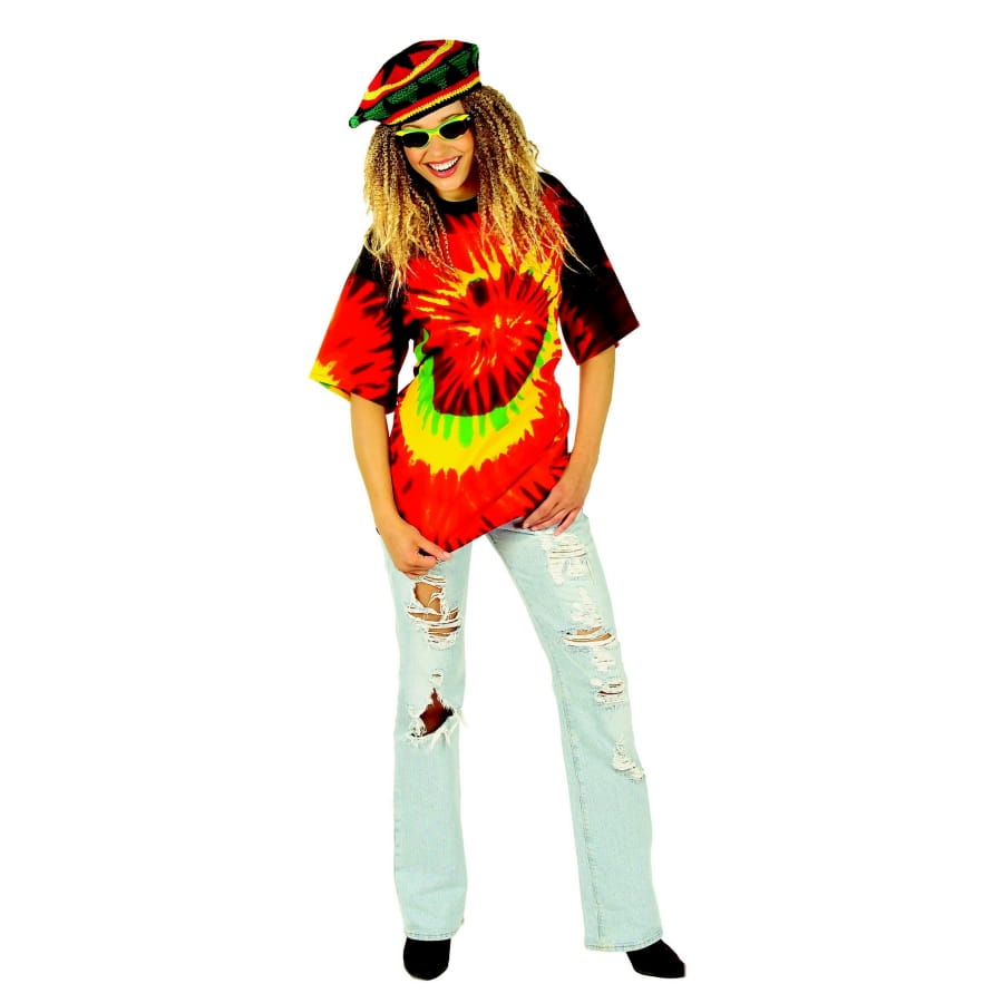 Une passion pour la culture rasta ? Portez fièrement les couleurs jaune vert et rouge à travers ce t-shirt rouge de rasta, mixte. Ce modèle pour homme et femme présente de superbes motifs verts, jeunes et noirs. Le vêtement est facilement remarquable et vous est conseillé pour la fête de la musique ou pour un carnaval.