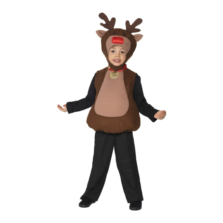 Déguisement de renne, pour enfant, composé d'un tabard de couleur marron et noire. Il est disponible en taille S ou T2. Faites porter ce costume à votre enfant à l'occasion d'une fête déguisée ou pour la Noël.
