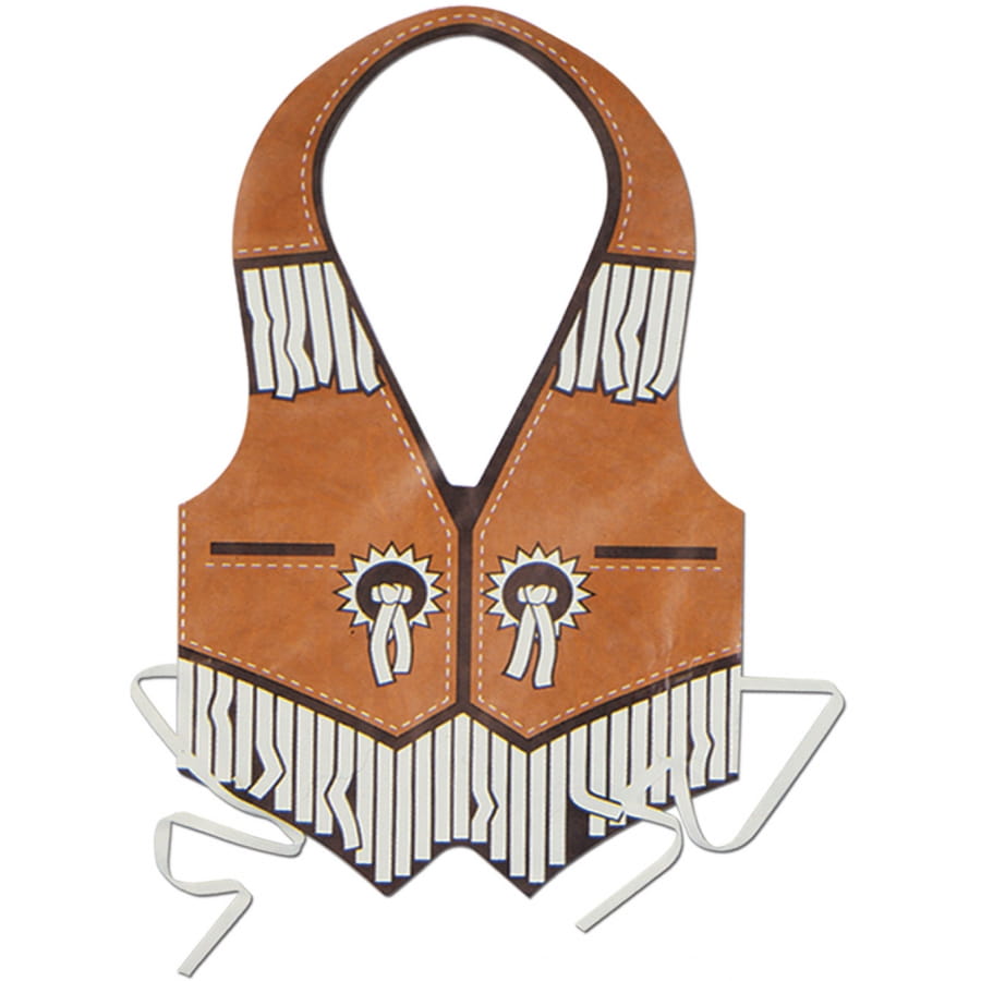 Le tablier est de couleur marron et des franges de cow-boy le décorent.