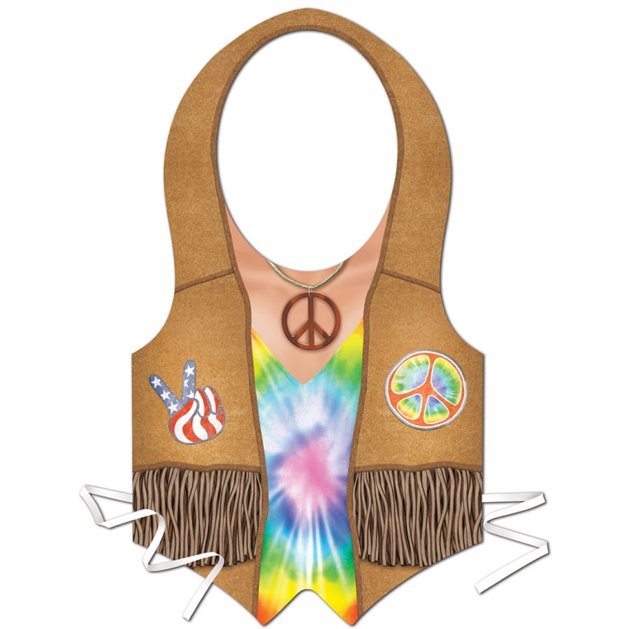 Le tablier est également décoré avec des emblèmes de hippie.