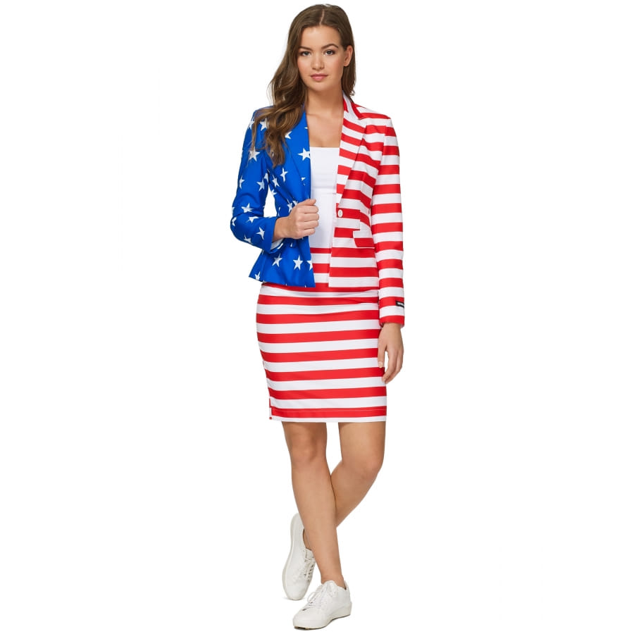 Nous vous proposons ce tailleur imprimé drapeau USA pour femme.