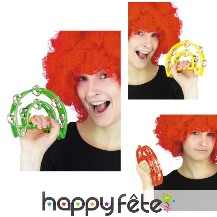 Il s'agit d'un tambourin en plastique, qui mesure à peu près 40 cm.