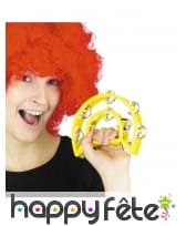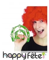 Ce tambourin est tout orné de cymbales argentées, qui font du bruit lorsque vous secouez l'accessoire.
