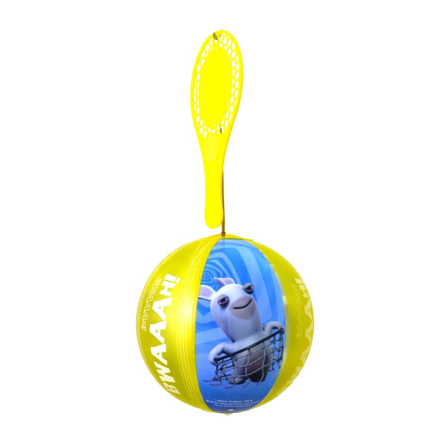 Pour les amateurs de lapins un peu foufous, n'hésitez pas à commander ce fabuleux tape balle à l'effigie des Lapins Crétins. Ce jeu ultra-amusant va bien occuper les enfants durant les vacances. Ils sont toujours inlassables quand il s’agit de jouets de leurs personnages favoris. Le jouet est de couleur bleue et jaune et fait 22 cm de dimension. A la commande, vous n'aurez pas le choix du modèle (vous recevez un tape balle avec l'un des lapins crétin ; le jaune ou le rouge, etc.)